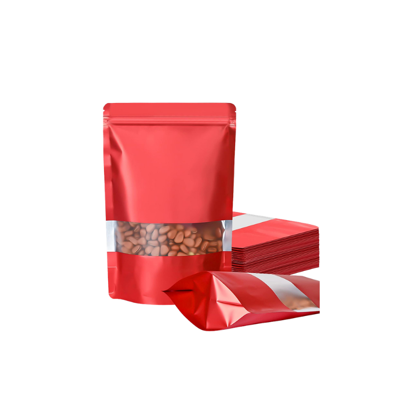 Bolsa pouch interior laminado con ventana color rojo – 14×20
